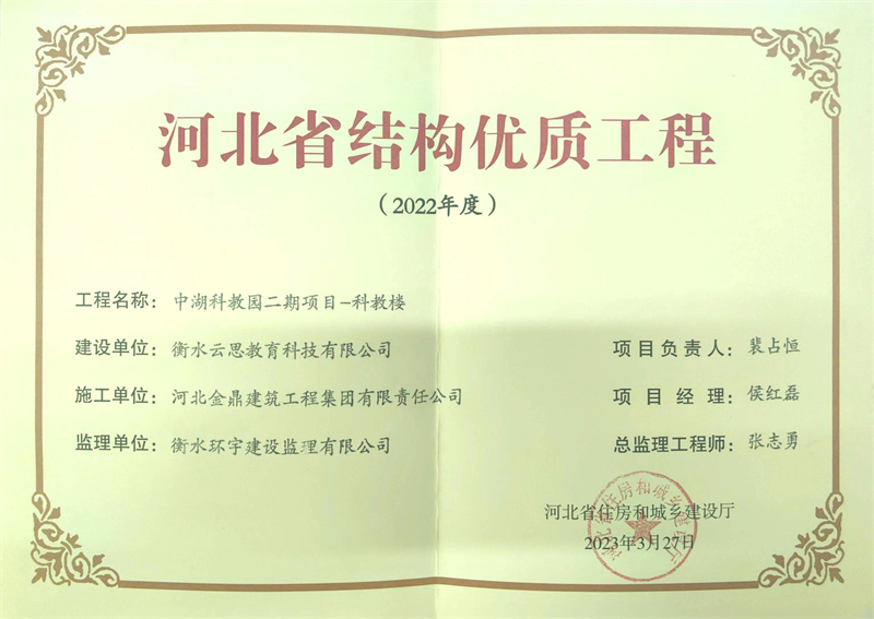 河北省結(jié)構(gòu)優(yōu)質(zhì)工程