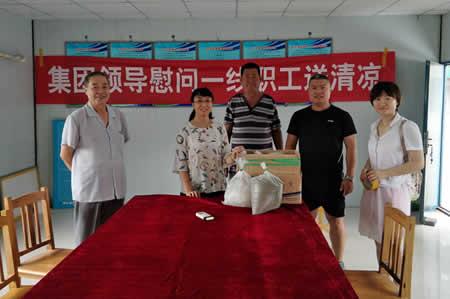 金鼎集團董事長戴永強心系基層職工,提出做好防暑降溫工作要求。由總經理馬艷想帶領生產部、辦公室人員深入到一線,向職工發放了綠豆、冰糖等,對職工慰問時,希望大家要做好暑期安全工作。