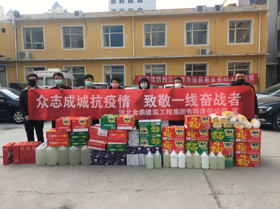 河北金鼎建筑工程集團有限責任公司創建于1954年,前身是衡水地改市之前的衡水市建筑一公司。公司成立近70年,深耕建筑產業,時刻承擔著重大的社會責任。面對當下嚴重的疫情情況,金鼎公司緊急采購大批相關物資,為疫情一線的奮戰者提供愛心捐贈,助力衡水疫情殲滅戰。